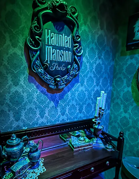 This space is incredibly immersive, filled with nods and interactive ghostly surprises inspired by the classic park attraction. The cast members fully lean into the theme. At one point, I was standing around when a server quietly came up behind me and whispered “boo,” which made me jump before we both laughed.