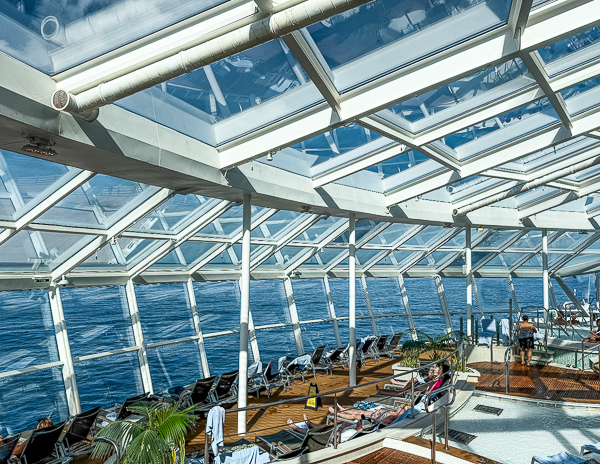 This was our first time on a Quantum-class ship, and the size fits our style of cruising much better than when we sailed on their Oasis-class ship, Utopia of the Seas. Quantum of the Seas is a little dated in areas, but it’s still well-maintained. We were surprised by how much pool space takes over deck 14 and how one of the pool areas can switch between indoor and outdoor depending on the weather.
